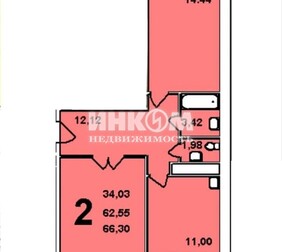 2-комнатная квартира, 63.4 м², этаж 8/17