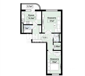 3-комнатная квартира, 66.4 м², этаж 15/17