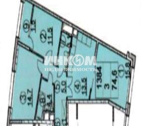 3-комнатная квартира, 74.7 м², этаж 13/17