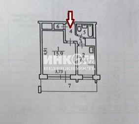 Общая площадь всей квартиры 33,3 кв.м., комната 15,9 кв.м., кухня 6...
