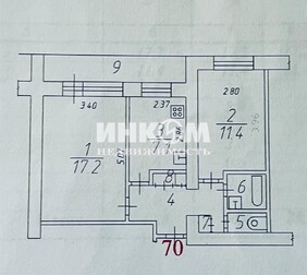 Продажа 2-х комнатной квартиры 52,4 кв.м. (в т.ч. лоджия 6 кв.м.), в шаговой доступности от МЦД "Нахабино" с видом во двор и лес. 9 этаж.