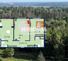 2-комнатная квартира, 55.7 м², этаж 1/12