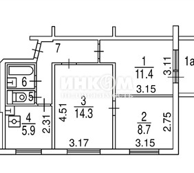 3-комнатная квартира, 58.2 м², этаж 1/9