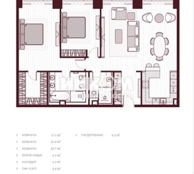 Просторная квартира с отличной планировкой в камерном комплексе бизнес-класса Приват Сквер. Спальня с большой лоджией, кабинет с гардеробной, гостиная, кухня с лоджией, два ...