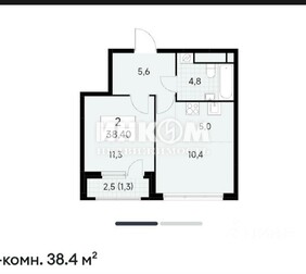 1-комнатная квартира, 38.5 м², этаж 3/17