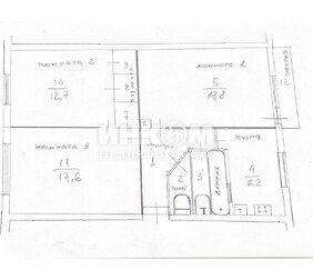 3-комнатная квартира, 54.3 м², этаж 2/2