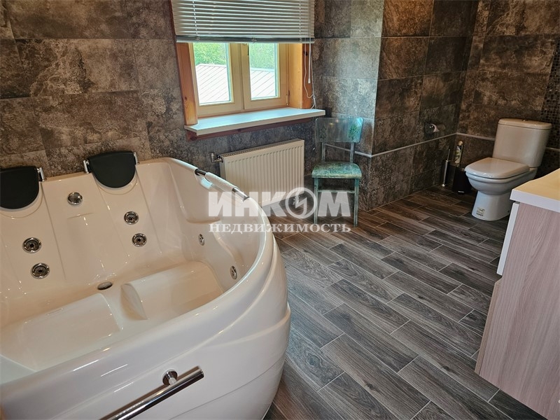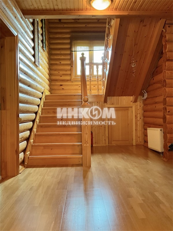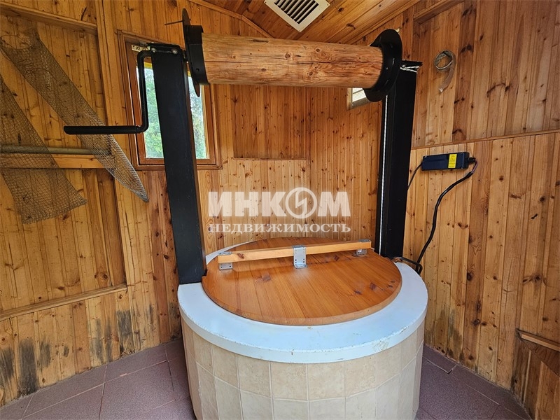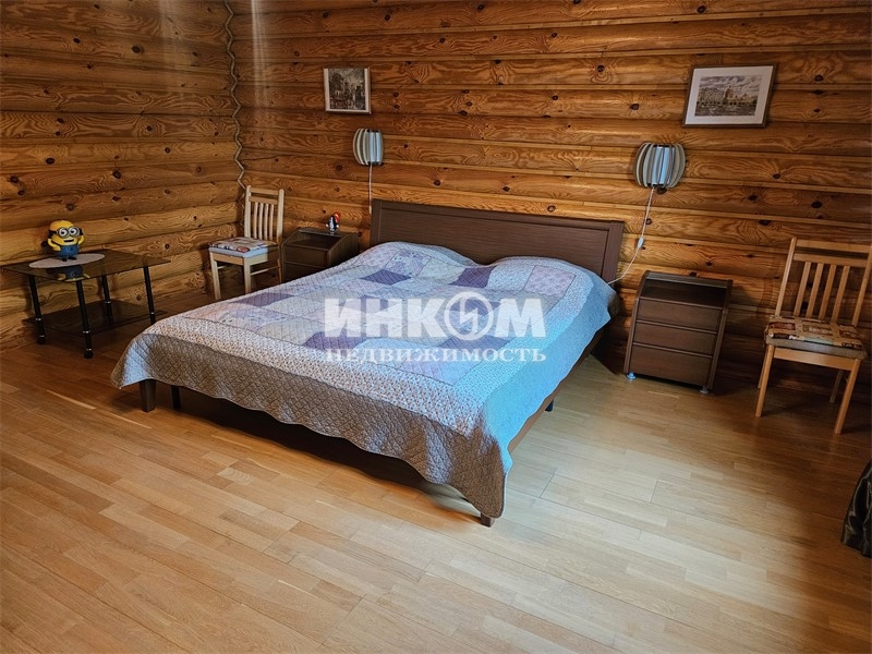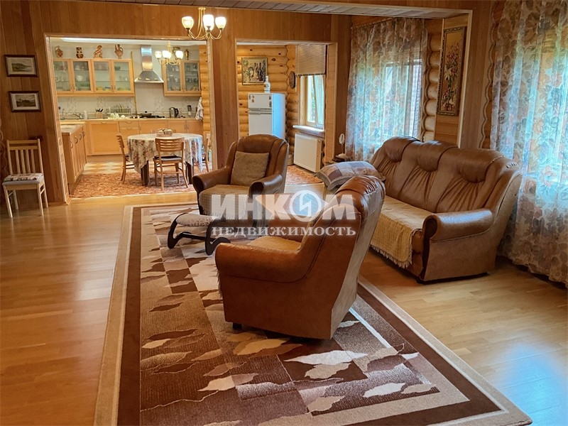 Номер лота: нп-0023656. Просторный дом из оцилиндрованного кировского бревна 2010 г. постройки, в окружении живописного лесного массива. Дом с хорошим ремонтом, полностью меблирован и оборудован бытовой техникой. Фундамент ленточный, монолитно-армированный; кровля - металлочерепица, стеклопакеты. На 1-м этаже: просторный зал с великолепным камином, мастер-спальня, прихожая, кухня с газ. плитой и посудомоечной машиной, санузел с душевой кабиной, бойлерная, крытая терраса. На 2-м этаже две спальни, кабинет, гардеробная, санузел с джакузи, большой застеклённый балкон. В подвале мастерская, водоочистительное оборудование. Коммуникации: электричество 380 вольт, 15 кВт, вода из колодца в 12 колец, септик с тремя переливными емкостями, газовое отопление, горячая вода - 2-х контурный котёл с дистанционным управлением. Идеально ухоженный участок с ландшафтным дизайном. На участке: большой гараж, со вторым жилым этажом; баня с сауной душевой кабиной, купелью и туалетом; открытая парковка на пять машин. Подъезд к дому удобный, асфальтированный, круглогодичный. Отличная транспортная доступность как на автомобиле, так и на общественном транспорте (13 км. до метро Пятницкое шоссе, 9 км. до ст. Крюково-Зеленоград). Развитая инфраструктура в шаговой доступности.