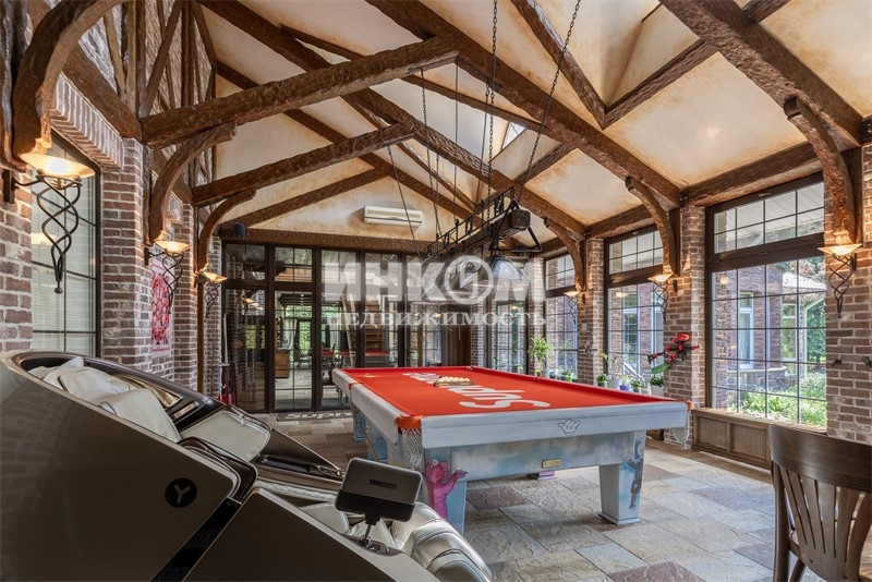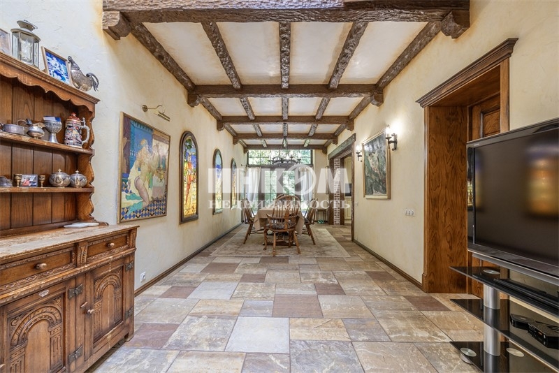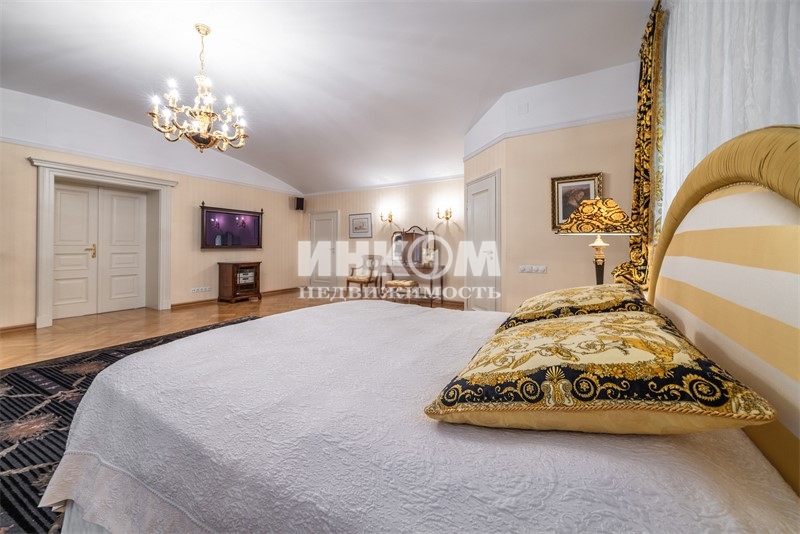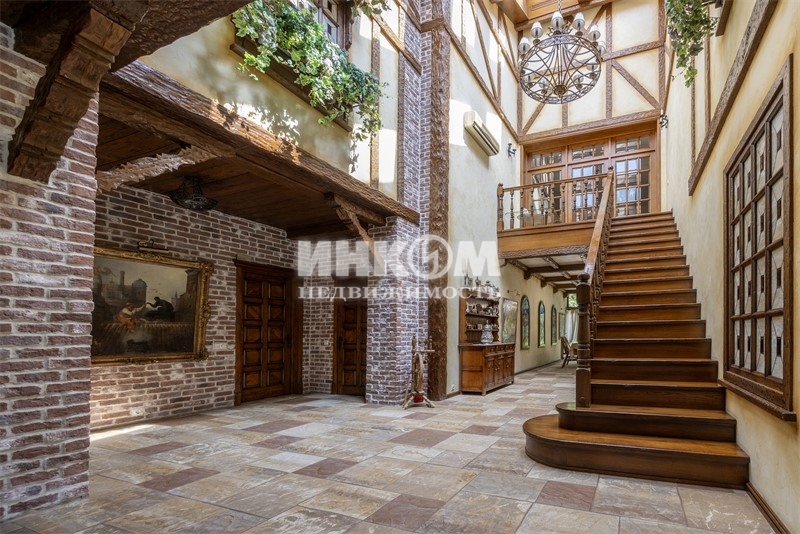 Номер лота: нп-0024166. Продается дом 765,8 кв. метров на участке 75 соток (участок состоит из двух участков) в Опалихе для тех, кто ценит комфорт, природу и уединение. Роскошный кирпичный дом, построенный из качественных материалов и оснащённый передовыми инженерными системами. Территория участка полностью огорожена забором из профлиста высотой 2,5 м, обеспечивая высокий уровень приватности и безопасности. На участке растут дубы, сосны, кедры, ели, берёзы, орешники, можжевельник, туи и множество декоративных кустарников; аккуратный газон и дорожки из натурального карпатского камня создают атмосферу уюта и гармонии с природой. По участку протекает живописная искусственная речка с водопадом и прудом - место, где хочется наслаждаться каждым днём. В доме просторный подвал с холлом, подсобным и техническим помещениями, постирочной; на первом этаже прихожая, холл, бильярдная, санузел, лестница на второй этаж, бассейн, комната отдыха, душевая, сауна, кухня, гостиная, гардеробная, несколько санузлов и жилых комнат; второй этаж включает холл, несколько санузлов и комнат, две гардеробные и балкон; на мансарде расположены две уютные комнаты и санузел. Так же есть отдельный дом для хоз. работников общей площадью 251,5 кв.м.. Дом оборудован кондиционерами, системой приточной вентиляции, видеонаблюдением, центральным водоснабжением и канализацией, водяным отоплением с двумя котлами Viessmann по 100 кВт, проточным бойлером на 500 литров, отдельным вводом электричества (100 А) и резервным дизель-генератором 250 А с автоматическим пуском. На участке находится хозблок с гаражом на 2 машины, комнатой для охраны, спортзалом, имеется навес для трёх автомобилей и садовой техники, вольер для трёх собак. У въезда и гаража выполнено мощение брусчаткой. Дом идеально расположен: лес в 100 м, церковь и пруд в 500 м, станция Опалиха в 850 м, Волоколамское шоссе в 1,5 км. Удобный подъезд по асфальтированной дороге, два въезда на участок, автоматические ворота для главного въезда и распашные пожарные ворота. Это место создано для тех, кто хочет жить вдали от городской суеты в атмосфере уюта, уединения и тишины, наслаждаясь комфортом премиум-класса и красотой природы прямо у себя дома.