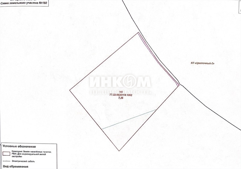 Номер лота: нп-0024302. Поселок расположен в 25 км от МКАД по Калужскому шоссе на территории Новой Москвы. Участок без подряда. Электричество 10 кВт подведено к границе участка и уже включено в стоимость. Категория земель - Земли населенных пунктов ИЖС (индивидуальное жилищное строительство), что делает возможным постоянную регистрацию (московскую прописку) в поселке. Добраться до поселка Цветочный 2 можно по скоростному живописному Калужскому шоссе, дорога от м. "Теплый стан" занимает всего 35 минут. Поселок хорошо вписан в природное окружение. Недалеко от территории поселка находится семейный парк "Красная Пахра". Вокруг - лесные массивы, цветочные луга, берег реки Жилетовки - притока главной реки района Пахры, с природным парком, благоустроенным для прогулок. Поселок охраняется, территория благоустроена. Поблизости расположены объекты инфраструктуры Троицкого административного округа Москвы и ближайшего Подмосковья: образовательные учреждения, медицинские центры, торгово-развлекательные комплексы и др
